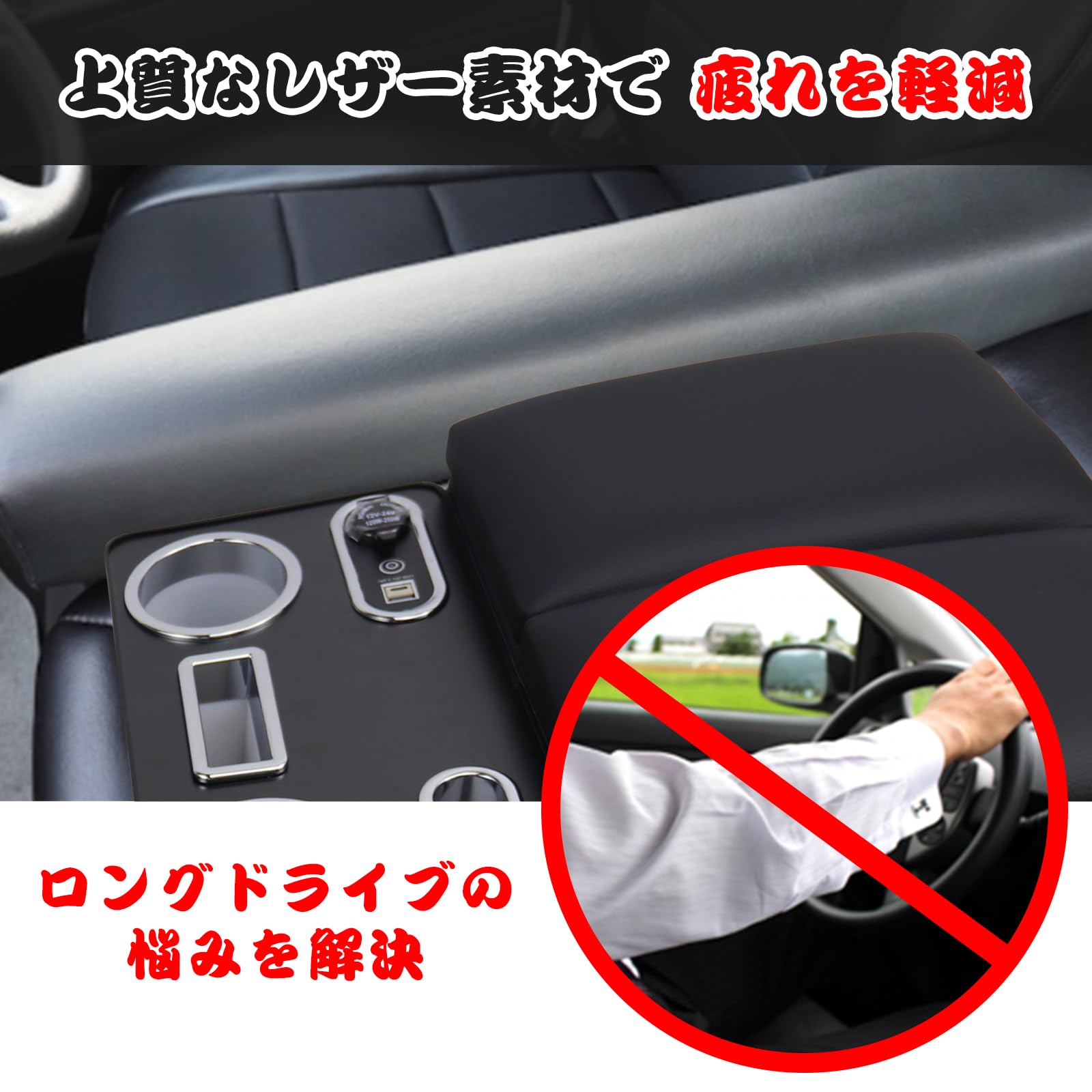 This is a specialized armrest center console box designed specifically for the Toyota HiAce 200 Series, particularly the DX model. It serves as a multifunctional interior upgrade, enhancing storage capacity and driver/passenger convenience. The product features a leather surface, integrated cup holders, and additional storage space, making it a practical addition for long drives and daily use.