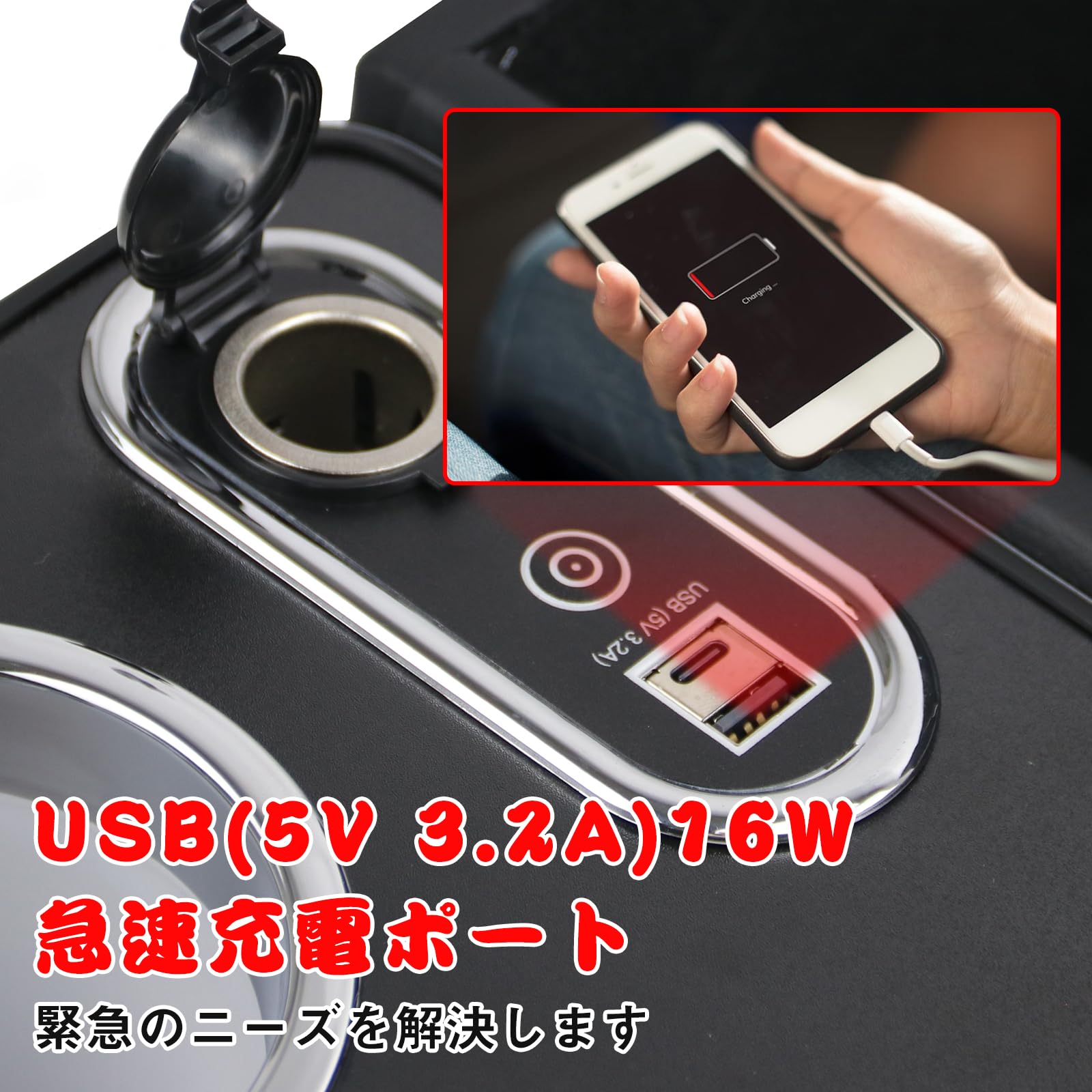 Functions: Storage Box, USB Charger, Cup Holder, Phone Holder