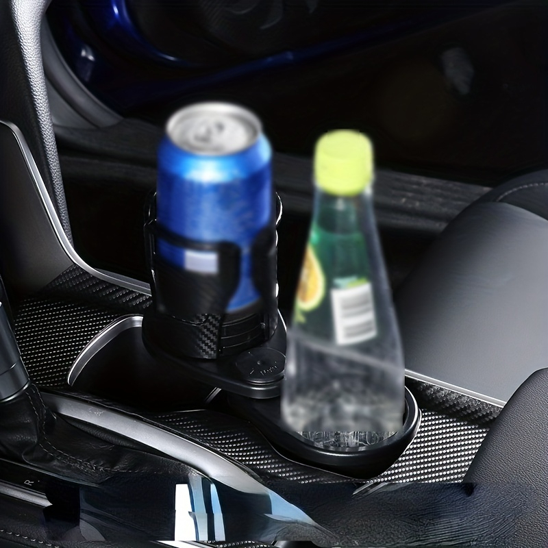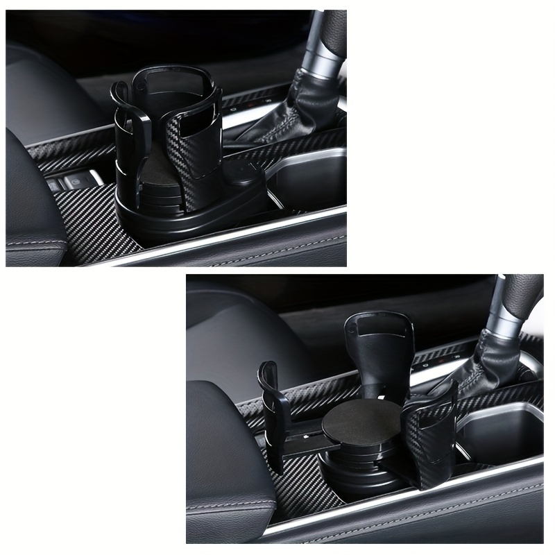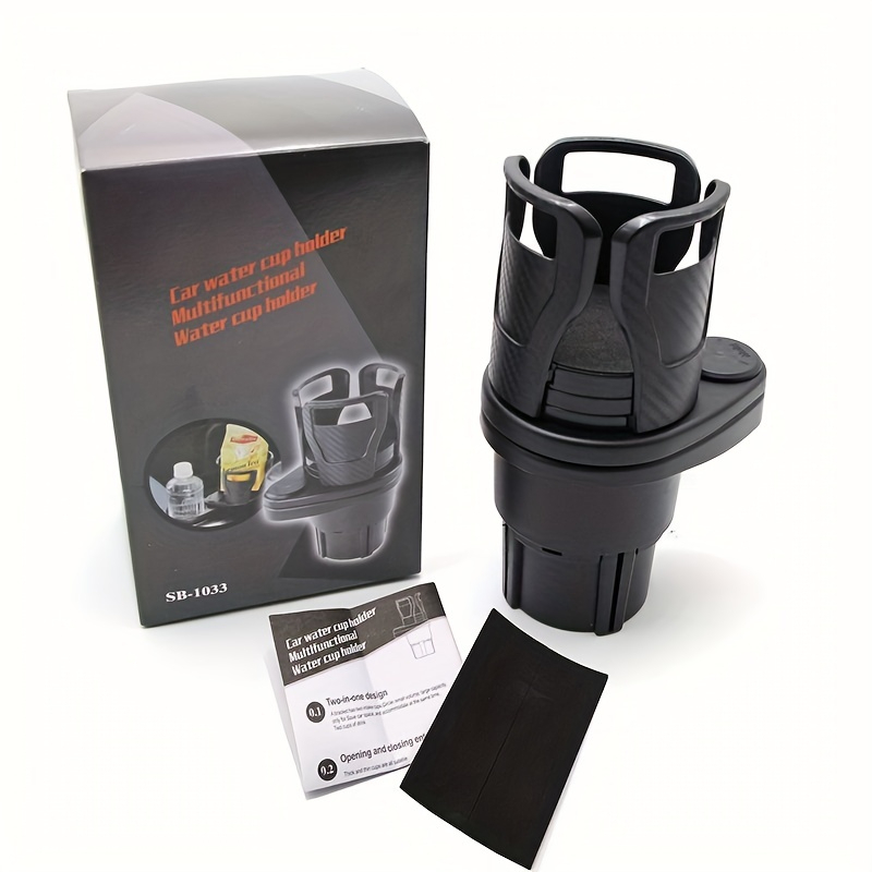 This innovative Car Cup Holder Expander is a versatile 2-in-1 solution designed to maximize your vehicle's interior space. It transforms a single standard cup holder into a dual-function storage hub, capable of securely holding two beverages or one beverage and your smartphone simultaneously. Crafted from durable ABS material, it features a 360-degree rotating base and an adjustable width mechanism to ensure a universal fit for most car models, including sedans, SUVs, trucks, and RVs. It is the perfect accessory for commuters, families, and road trip enthusiasts seeking enhanced organization and convenience.