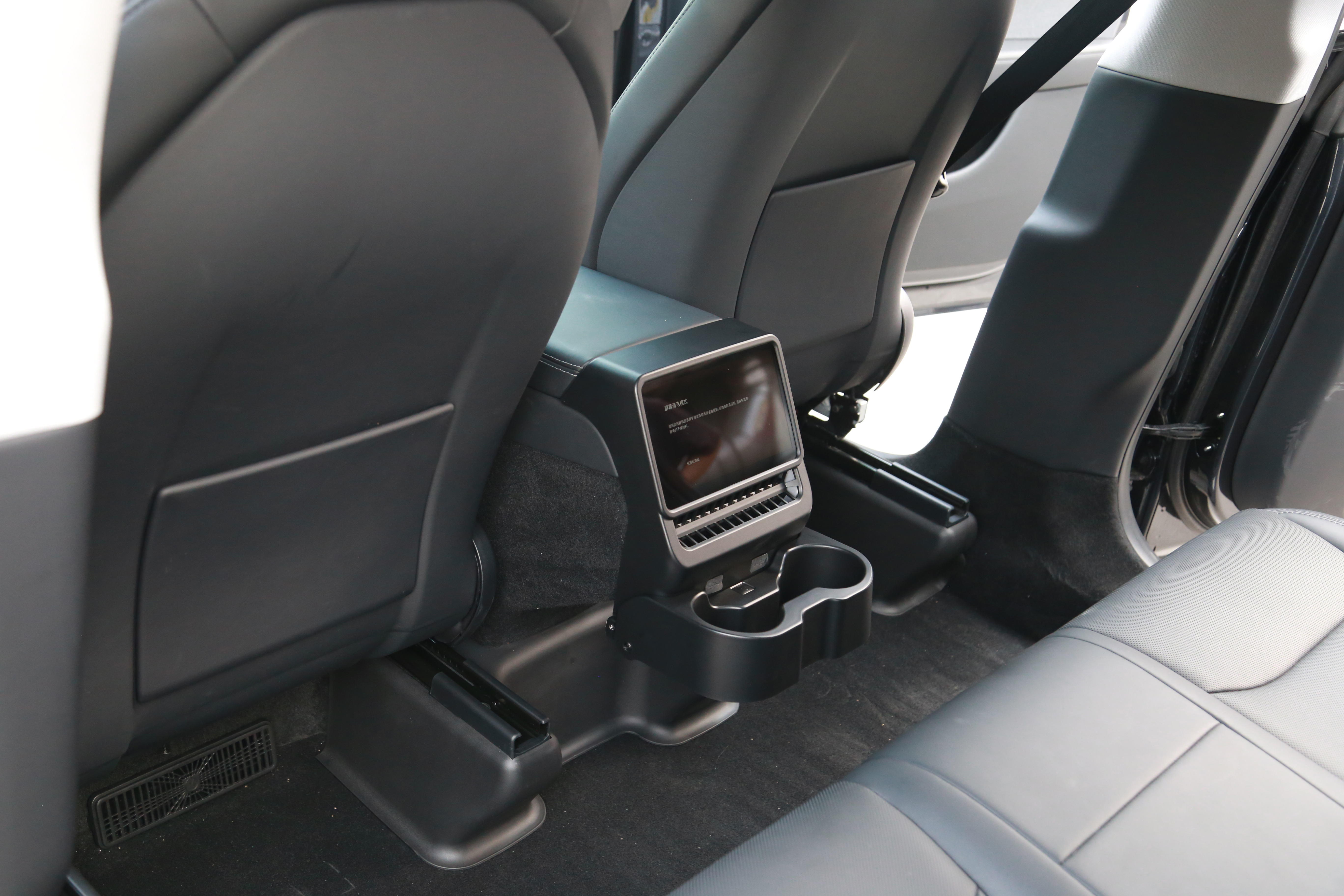 This cup holder is designed for easy installation, typically attaching securely to the rear of the Model Y's center console. It provides a stable platform for cups, cans, and small bottles, enhancing the comfort and functionality for passengers in the back seat. Its design ensures that it does not interfere with the vehicle's existing features, such as the rear air vents or the optional rear entertainment screen.