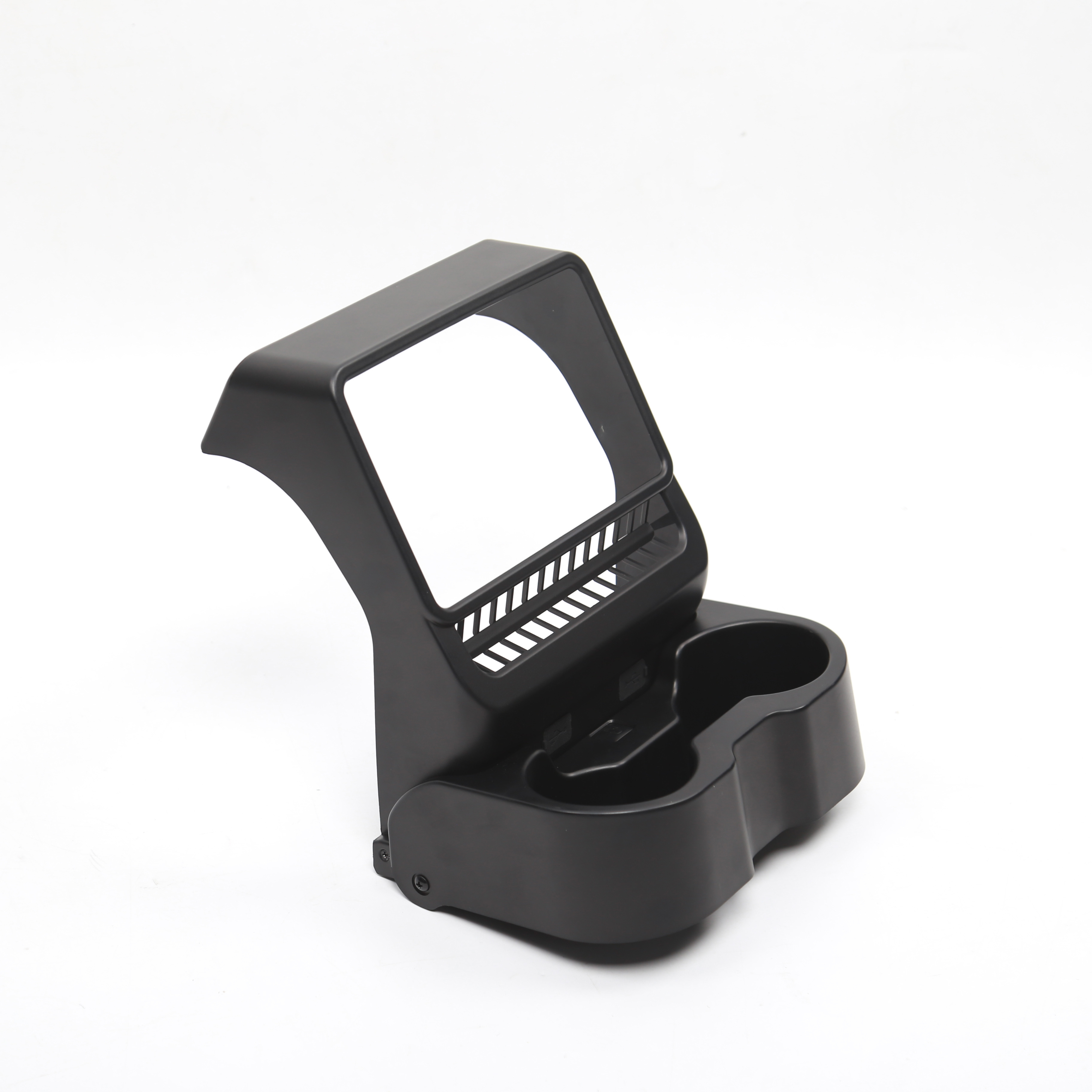 This Juniper ABS Rear Screen Cup Holder is a specially designed interior accessory for the Tesla Model Y. Crafted from durable ABS plastic, it offers a classic and practical solution for rear-seat passengers to securely hold their beverages. It is designed to integrate seamlessly with the vehicle's interior, providing added convenience without compromising on style or space.