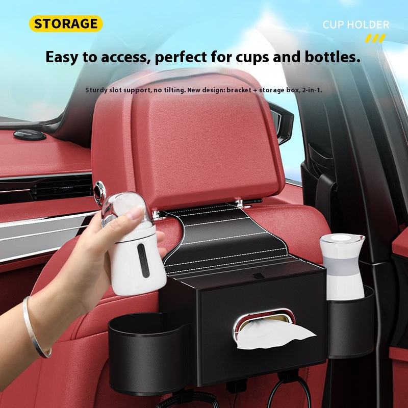 Middle Row Cup Holder, Rear Tissue Box Slot, Hook for Hanging Items