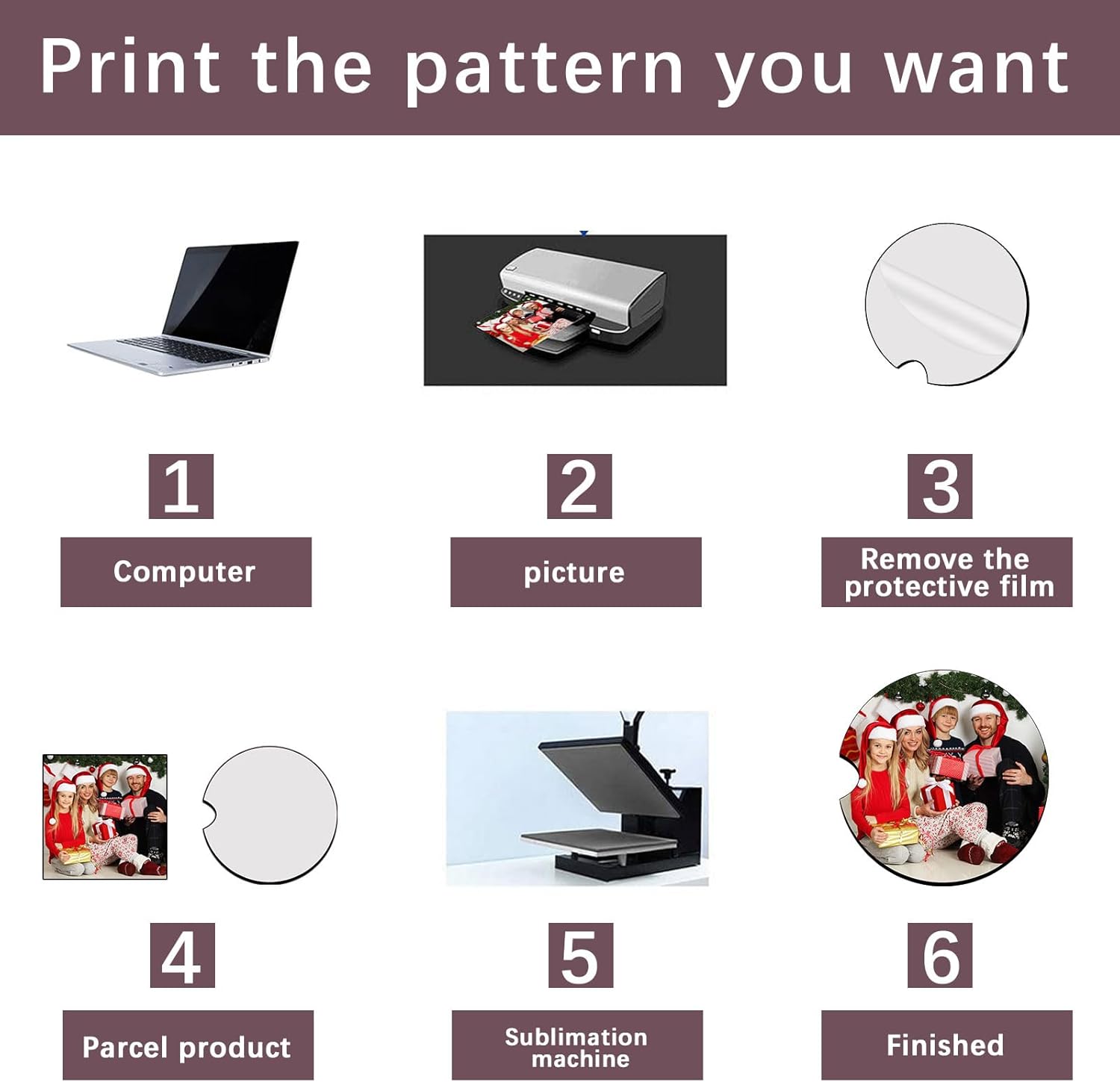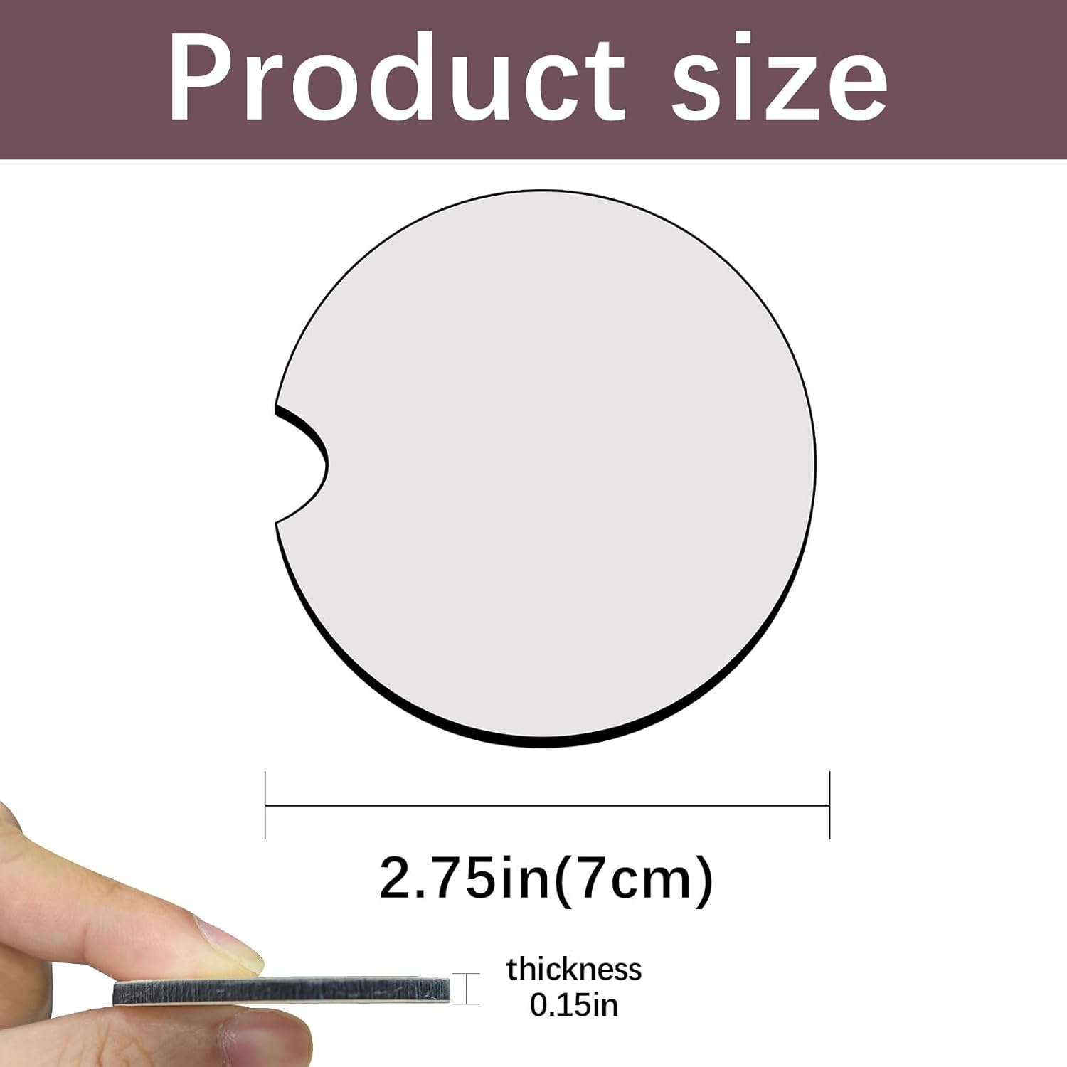 These coasters are supplied as "blanks," meaning they are unfinished and ready for customization. Their primary use is in sublimation printing, a process where heat and pressure are used to transfer a design from a special paper onto the MDF surface. Once a design is printed and transferred, the coaster becomes a vibrant, durable, and personalized item. They are specifically designed to fit into car cup holders, protecting the interior from drink stains, condensation, and heat marks. They can also be used as standard drink coasters for home or office use.