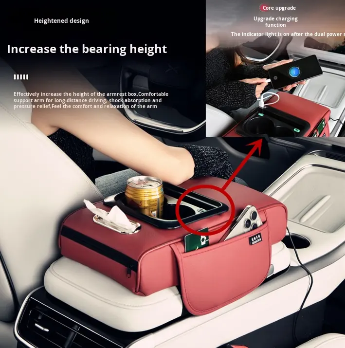 The Universal Car Armrest Console Box (Model: CNS-035) is an innovative interior accessory designed to enhance comfort and organization within your vehicle. Positioned between the front seats, this unit serves as a multifunctional hub that provides a comfortable resting place for your arm during long drives, significantly reducing fatigue. Crafted with a focus on practicality, it integrates storage solutions, cup holders, and even a tissue dispenser, making it an essential upgrade for daily commuters and frequent travelers alike. Its universal design aims to accommodate a wide range of vehicle models, from sedans to SUVs, without the need for complex modifications.