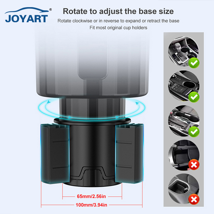 The Joyart JY-DSB Car Cup Holder Expander is an innovative aftermarket accessory designed to solve the common problem of standard car cup holders being too small for modern large-size tumblers, water bottles, and coffee cups. Crafted from durable ABS material, this expander features an adjustable base that fits a wide range of vehicle cup holder diameters, ensuring a secure and stable fit for drinks up to 40 ounces or more. Its simple yet effective design enhances the functionality of your vehicle's interior without requiring permanent modifications.