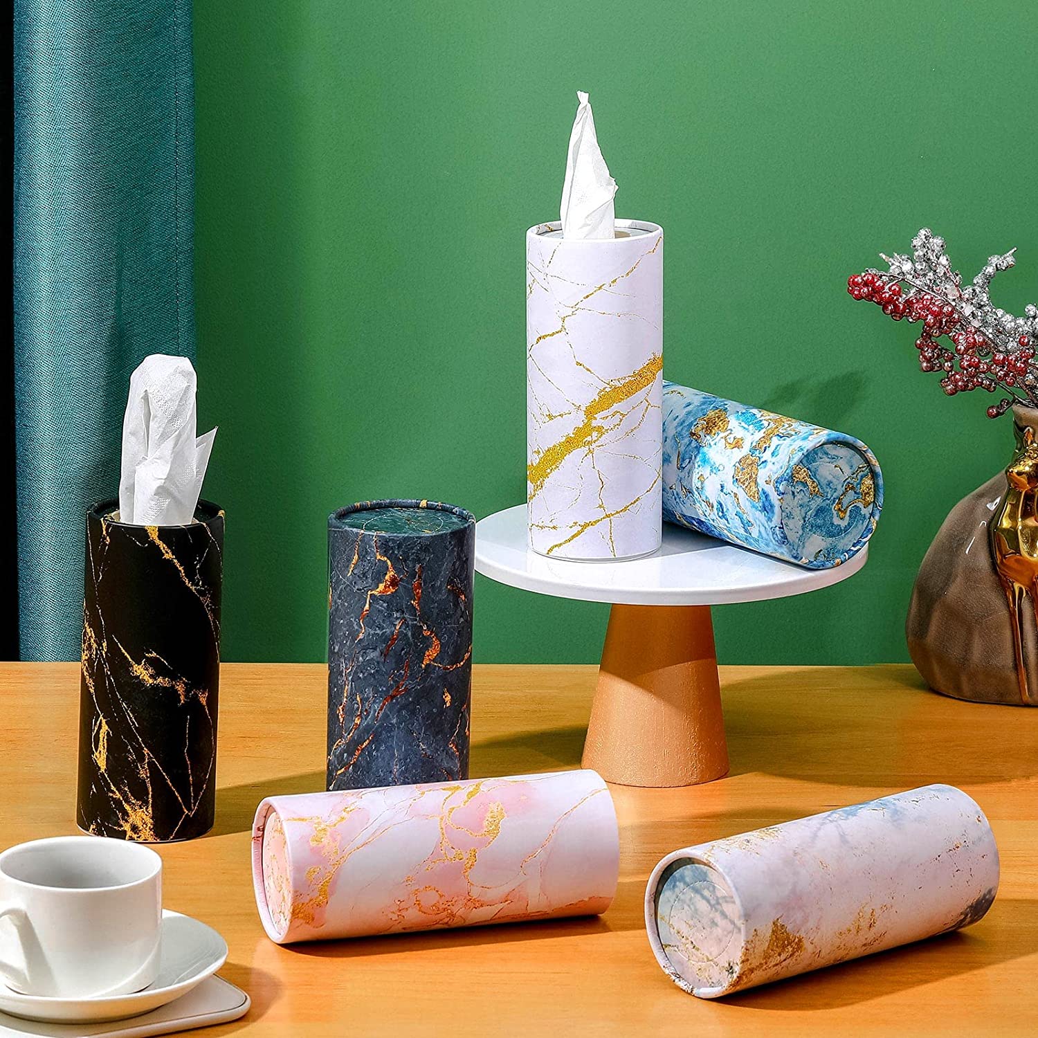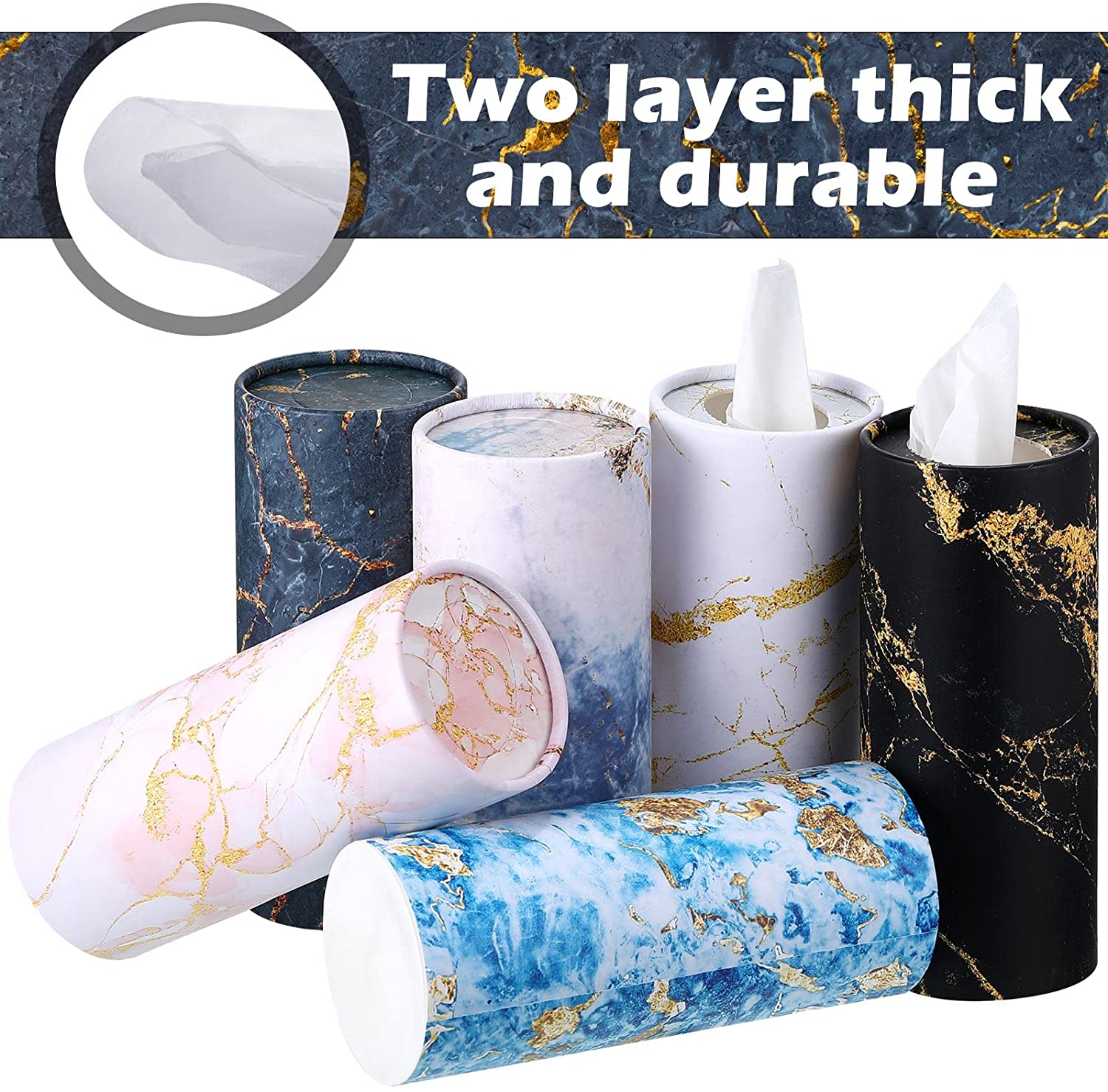 Marble Printed Cylinder Car Tissue Boxes: Napkins Round Disposable Tissues Box for Car Cup Holder