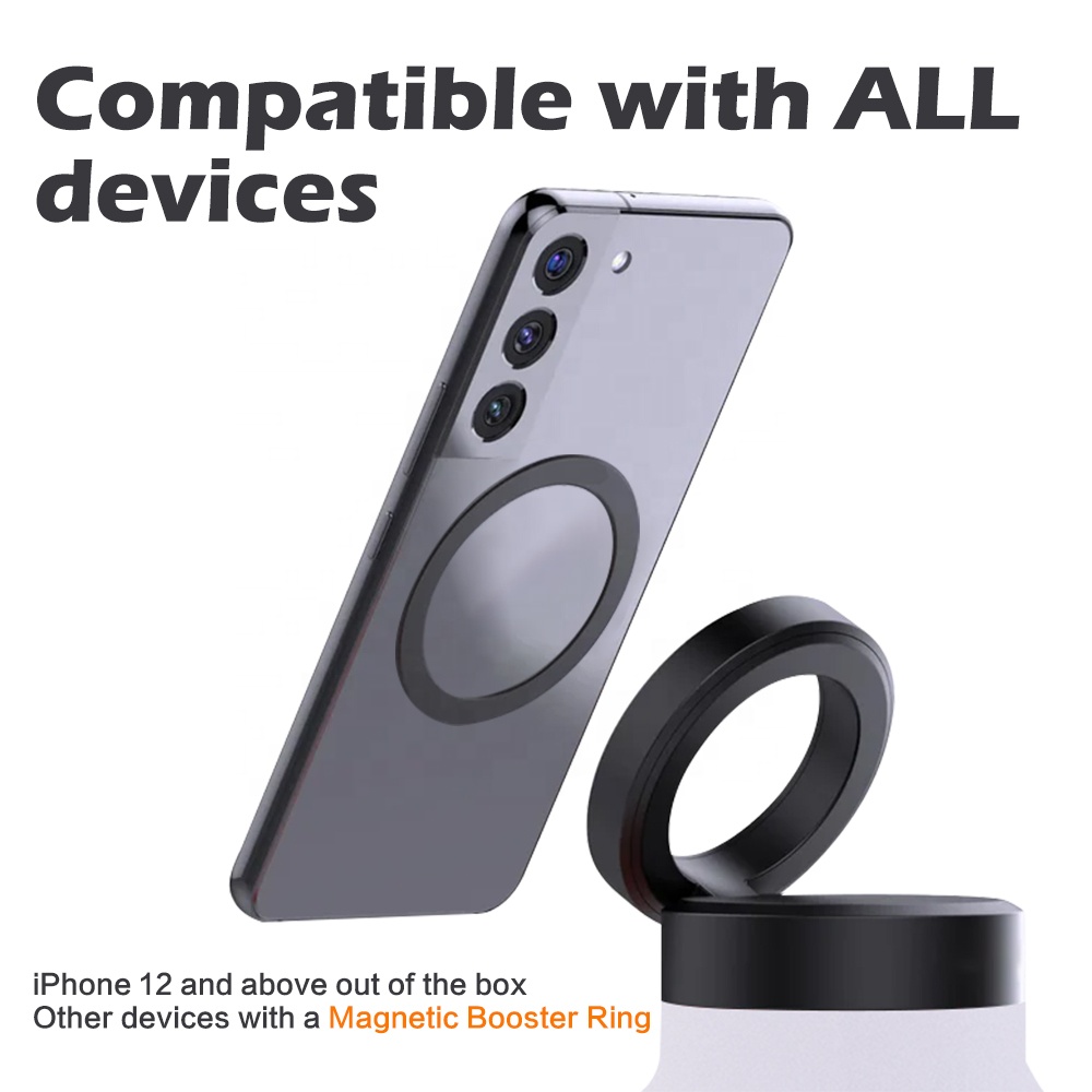 Universal Compatibility: Works natively with MagSafe iPhones (iPhone 12 and above). Includes a free Magnetic Booster Ring for all other devices, including Android phones, older iPhones, and even tablets like the iPad 12.9".