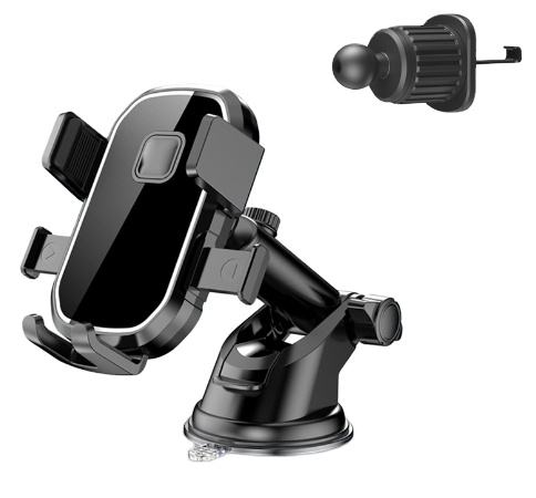 A professional-grade car phone mount designed for secure, hands-free navigation and communication. This versatile bracket combines suction cup stability with air vent clip convenience, featuring 360-degree rotation for optimal viewing angles.