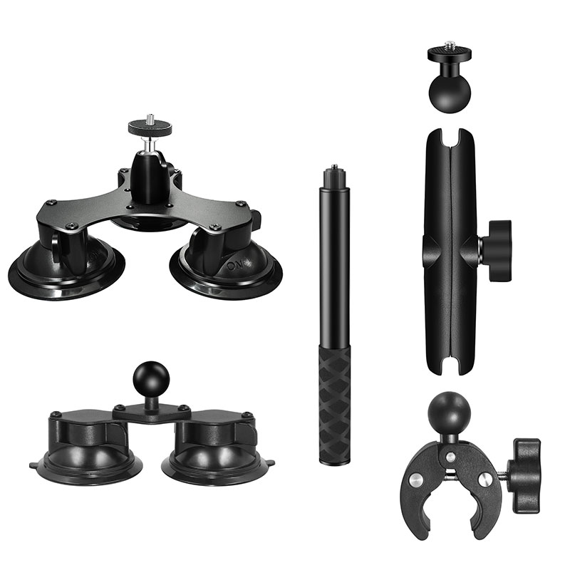 | Insta360 X4 | 8K/30fps 360° video, 5.7K/60fps, 72MP photos, Active HDR | Ideal for capturing immersive 360° driving footage. The mount provides stability for high-resolution recording. |