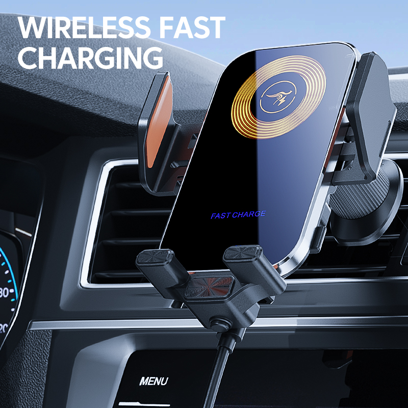 This is a 2-in-1 intelligent car accessory that combines a fast wireless charger with an automatic clamping phone holder. Designed for modern drivers, it offers a seamless and hands-free experience for charging and navigation. The device features smart sensor technology that automatically opens and closes the clamping arms upon sensing your phone, allowing for one-handed operation. It supports up to 15W of fast wireless charging for compatible devices, ensuring your phone stays powered during commutes or long journeys.