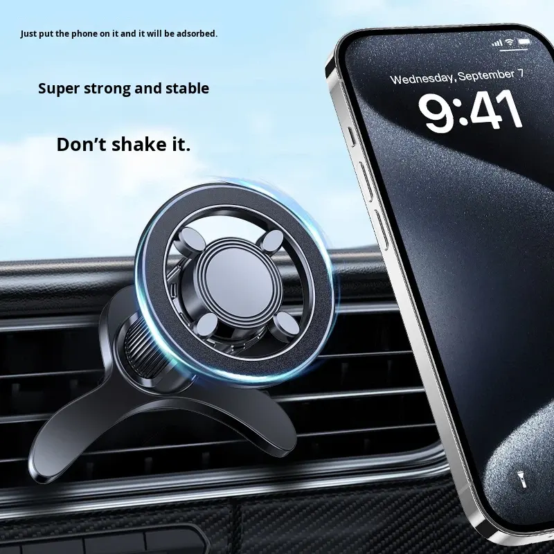 Strong Magnetic Suction: Equipped with powerful N52-grade neodymium magnets, providing a firm grip on your phone, preventing falls during sudden stops or turns.