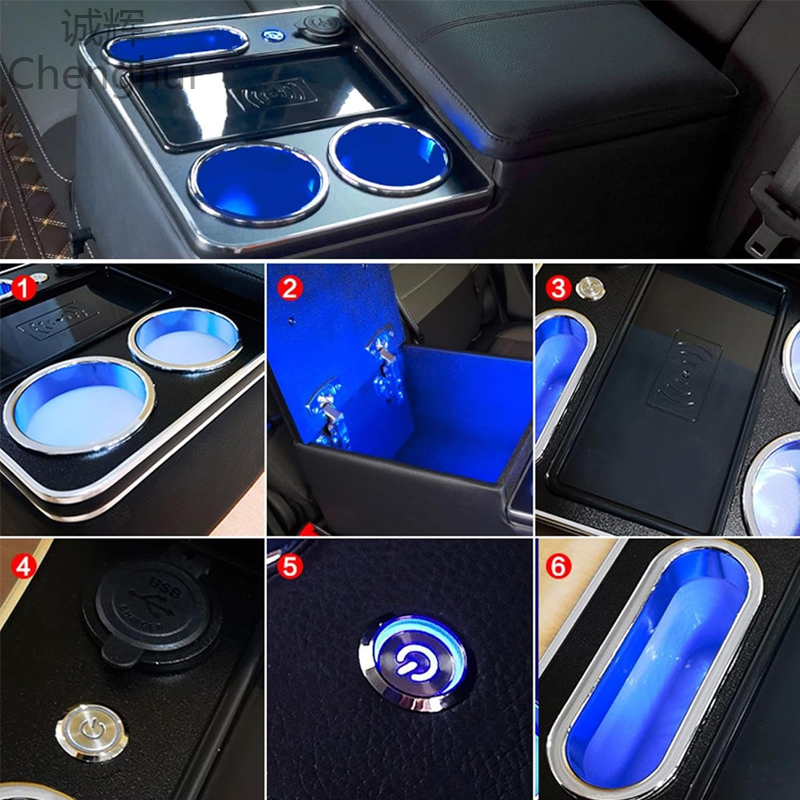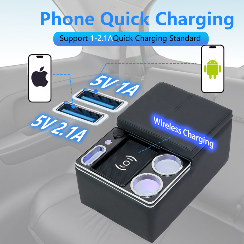 Storage Box, USB Charger, Cup Holder, Wireless Charging