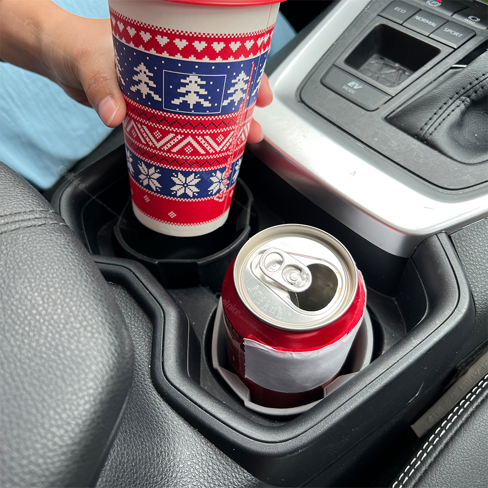 - Insert the Adapter: Simply press the silicone adapter into your car's cup holder slot. The flexible material will conform to the shape for a snug fit.