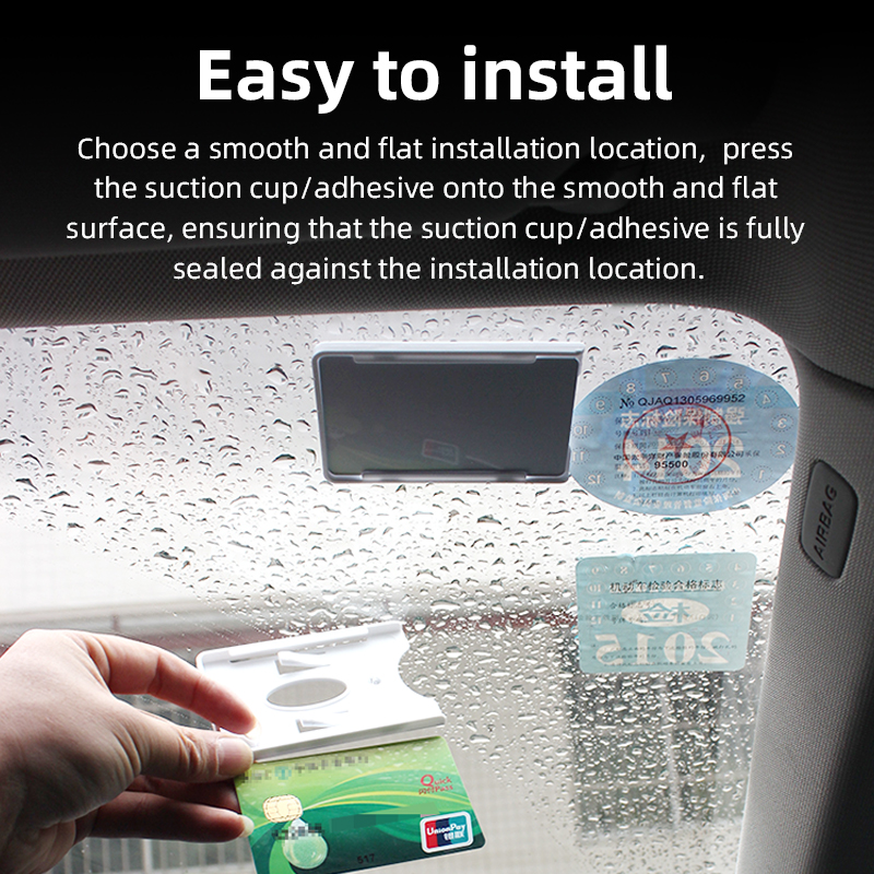 Secure Hold: Both suction and adhesive options provide a reliable hold, preventing the card from falling while driving.