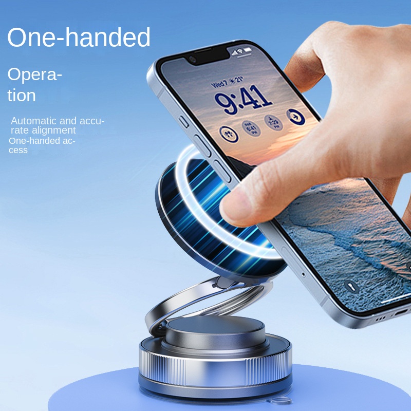 This 2025 new car phone holder features an advanced vacuum suction cup combined with a super strong magnet, offering a secure and stable grip for your mobile phone during car journeys. Its innovative design allows for 360-degree rotation, providing optimal viewing angles for navigation, hands-free calls, or media consumption. The holder is universally compatible with most smartphones and is designed for easy installation on the car's dashboard or other smooth surfaces.