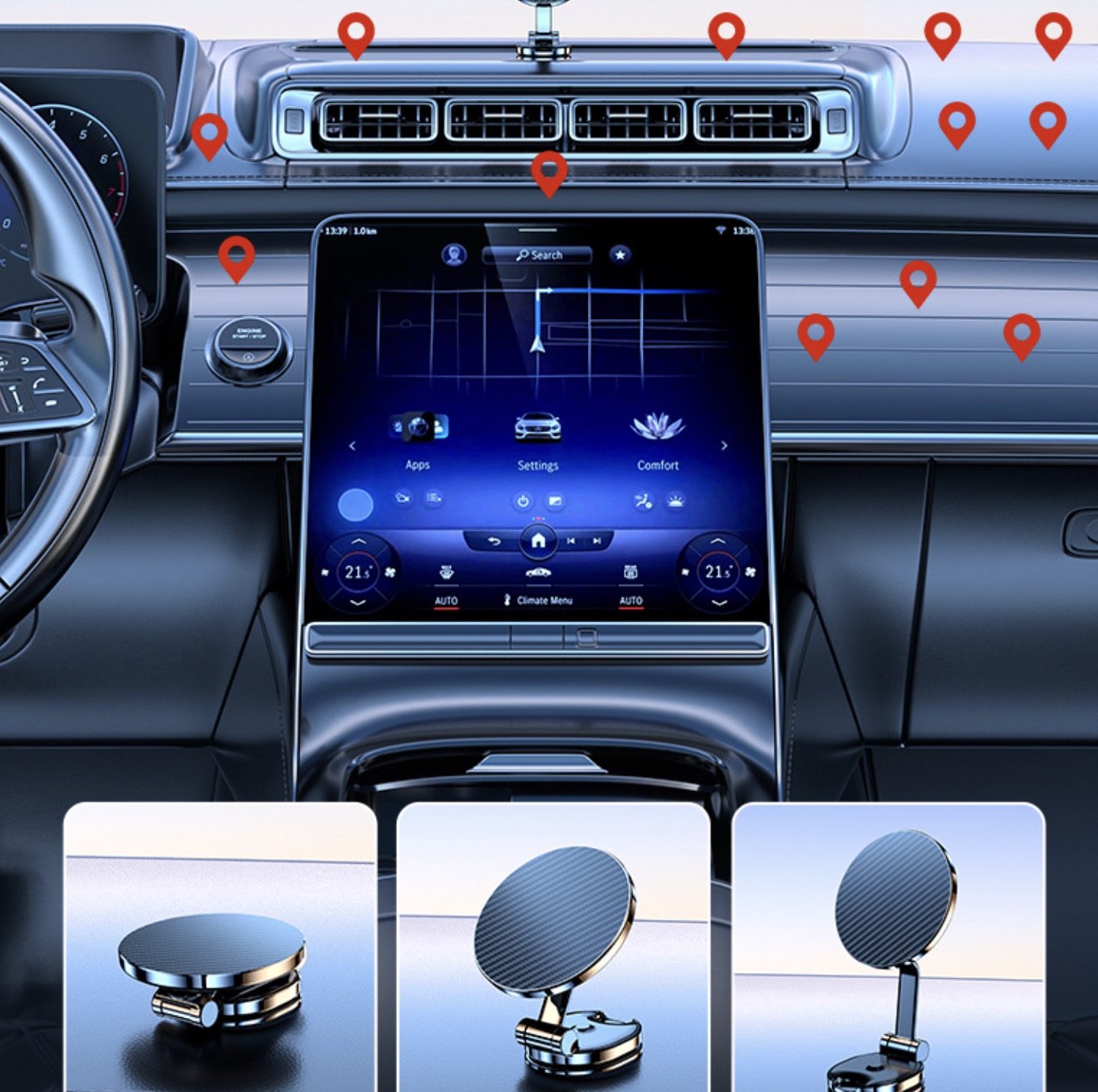 This universal car phone holder is designed for drivers seeking a secure, convenient, and hands-free solution for their smartphones. Featuring a super-strong magnetic grip and a durable zinc alloy construction, it ensures your device stays in place even on bumpy roads. The holder is universally compatible with most smartphone models and offers 360-degree rotation for optimal viewing angles, enhancing both safety and accessibility while driving.
