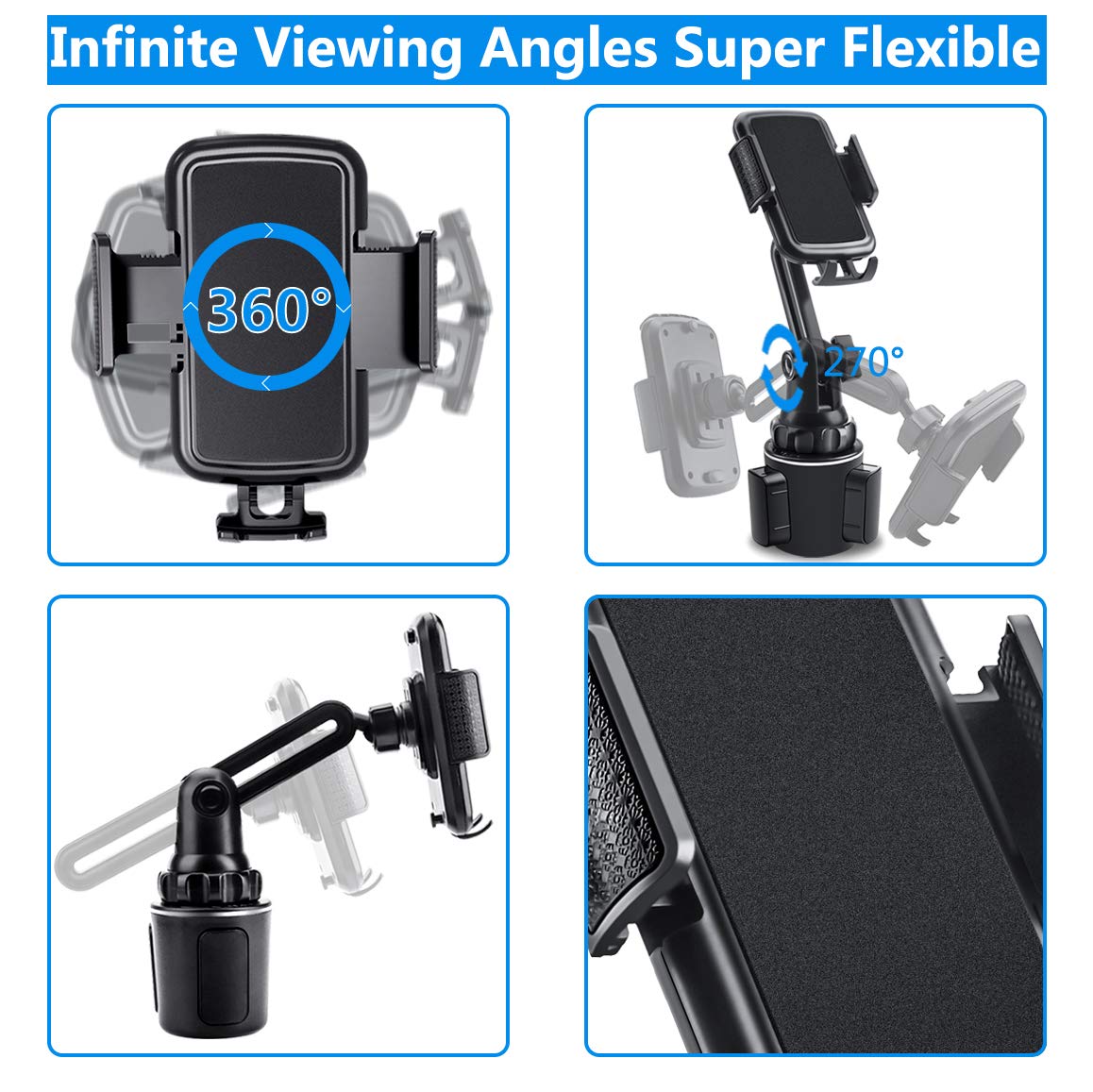 Universal 2-in-1 Car Cup Holder Expander with Adjustable Phone Mount