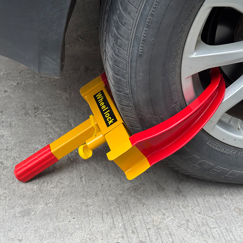 Position on Wheel: Place the clamp securely around the tire and rim, ensuring the locking mechanism is positioned in a way that prevents the wheel from turning.