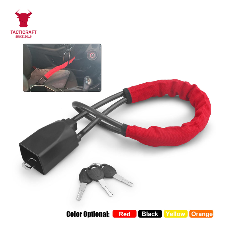 This Tacticraft Anti-Theft Car Steering Wheel Lock is a robust security device designed to protect your vehicle from theft. It features a strong, braided steel construction with a PVC coating and a U-shaped design that securely locks onto the steering wheel, preventing it from being turned. The lock comes with three keys for convenience and is universally compatible with most car models. Its primary function is to serve as a visible deterrent to potential thieves, enhancing your car's security.