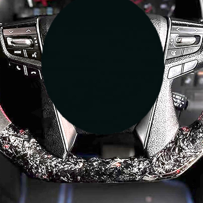 This forged carbon fiber steering wheel is intended for automotive interior upgrades. It is designed to replace the factory steering wheel to enhance the aesthetic appeal and potentially improve grip and driving feel. Installation typically requires: