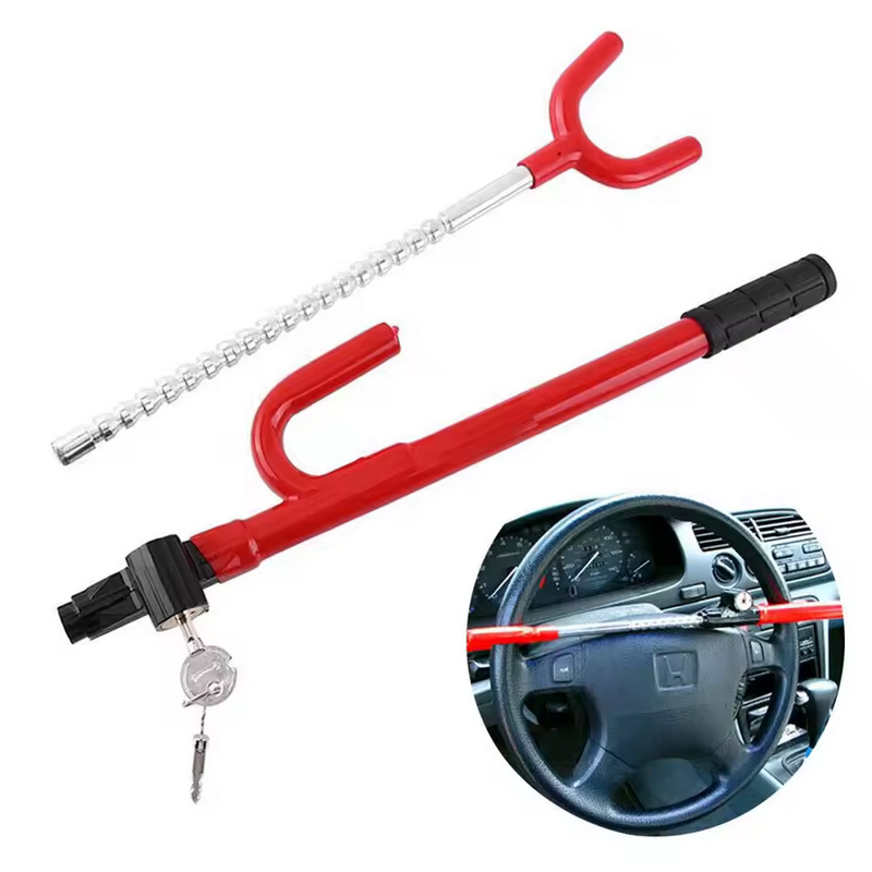The JYFXARAQS05 Adjustable Twin Bar Steering Wheel Lock is a high-visibility anti-theft device designed to provide robust security for your vehicle. Its U-shaped telescopic design ensures a universal fit for most cars, trucks, and SUVs. Constructed from durable steel, this lock serves as a powerful physical and psychological deterrent against potential thieves by immobilizing the steering wheel.