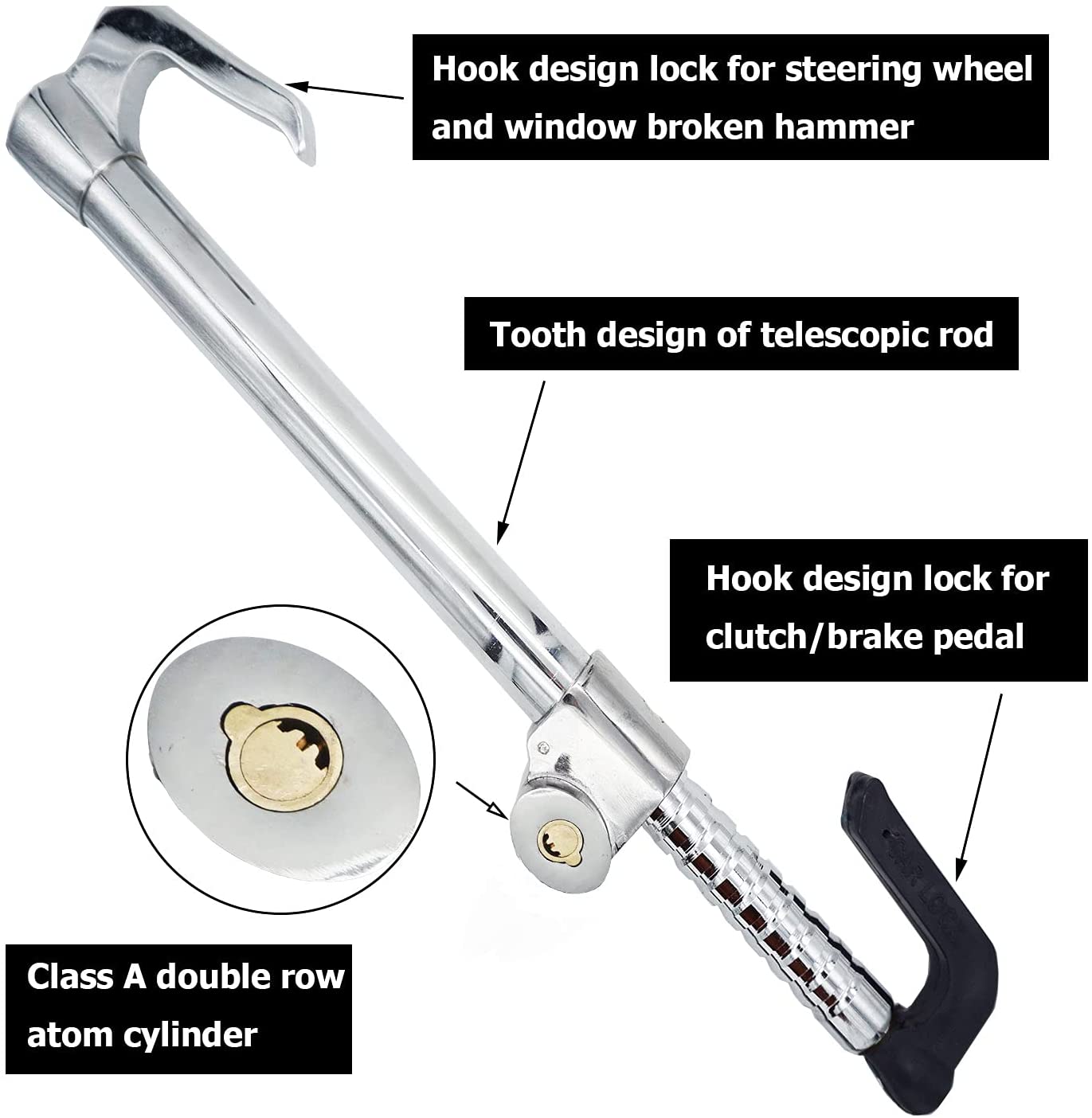 Feature-Based: heavy-duty steering lock, adjustable car lock, pedal to steering wheel lock
