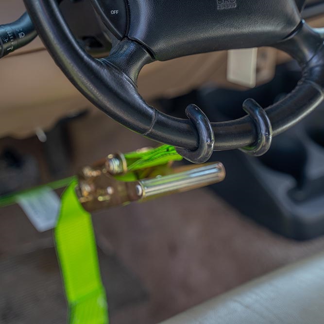 Professional 2 inch Steering Wheel Lock Strap for Wrecker Tow Truck & Car Hauler