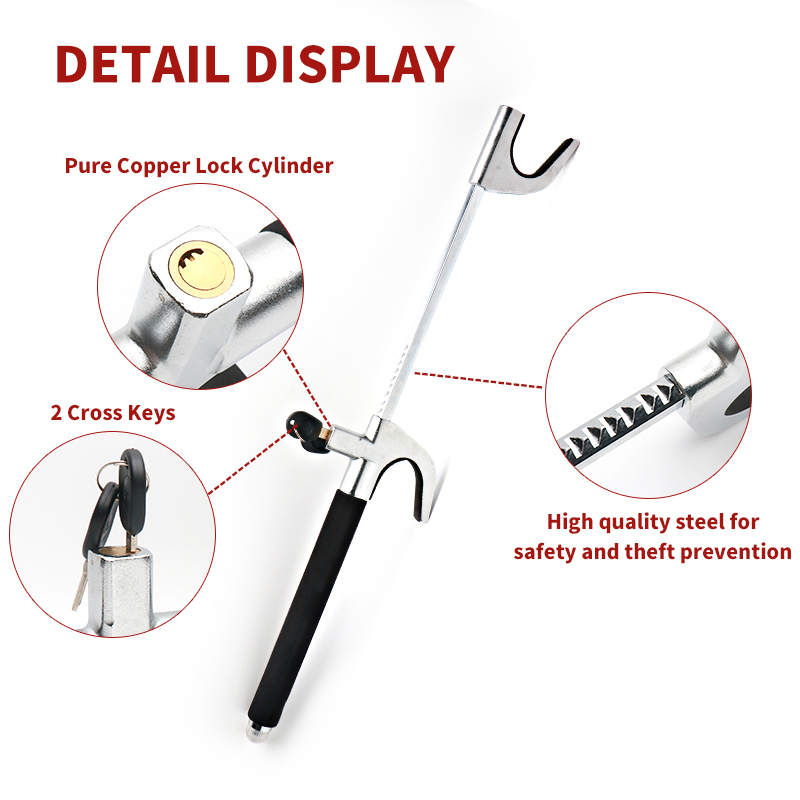 This lock operates on the fundamental principle of physically immobilizing the steering wheel, making it impossible to steer the vehicle even if the thief manages to start the engine. The U-shaped bar hooks around the steering wheel, and its adjustable length ensures a snug fit, preventing removal without the unique key.