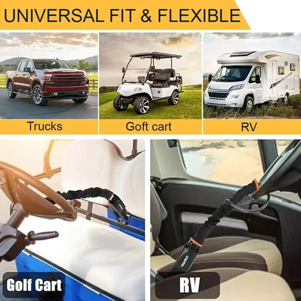 Feature-Based Keywords: reinforced cable lock, universal car lock, high visibility car lock