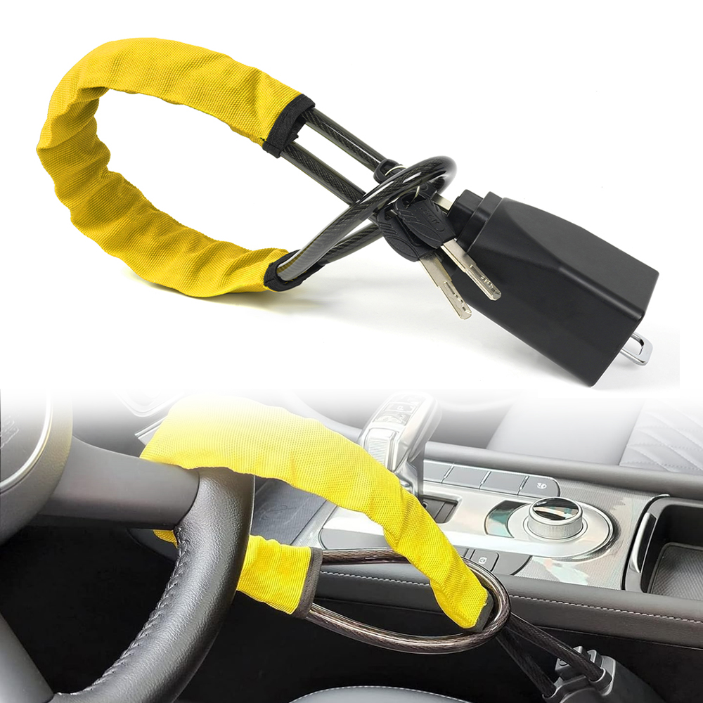 Dual Security: Locks both the steering wheel and the seat belt buckle for enhanced immobilization.