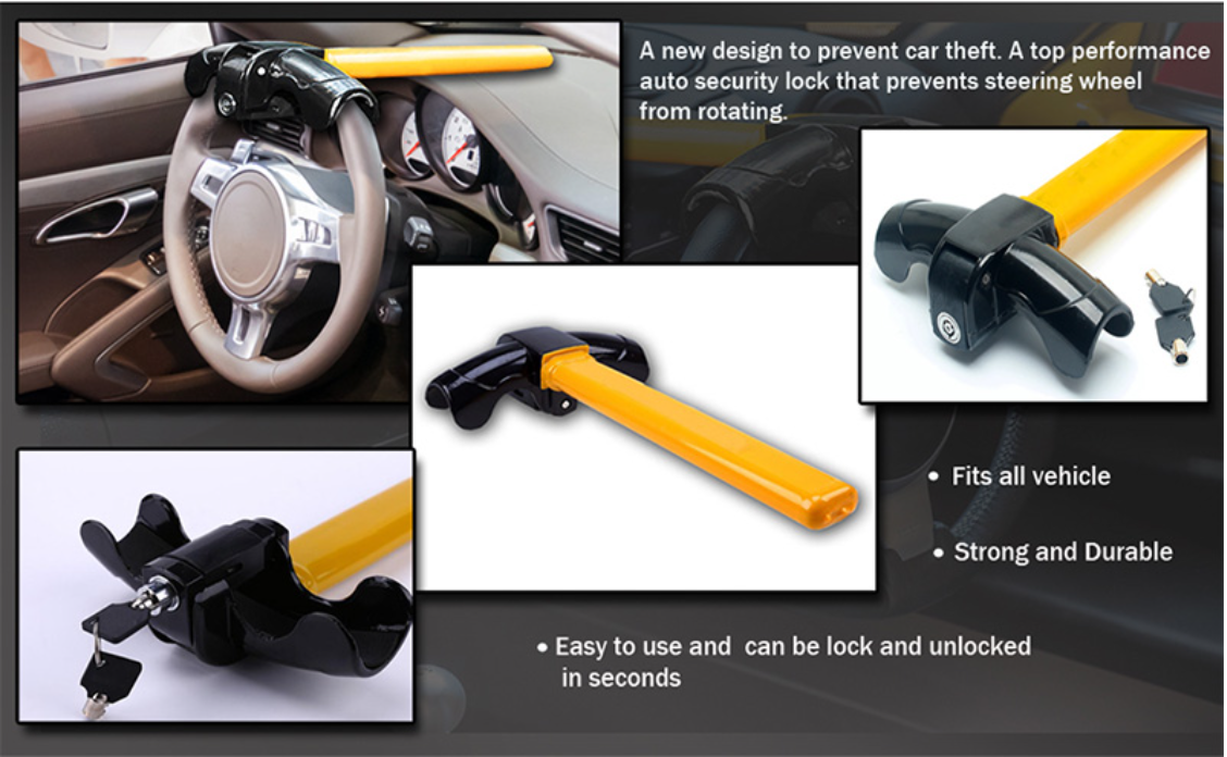- Umedo Durable Using Aluminum Alloy Universal Heavy Duty Car High-Security Yellow Steering Wheel Lock