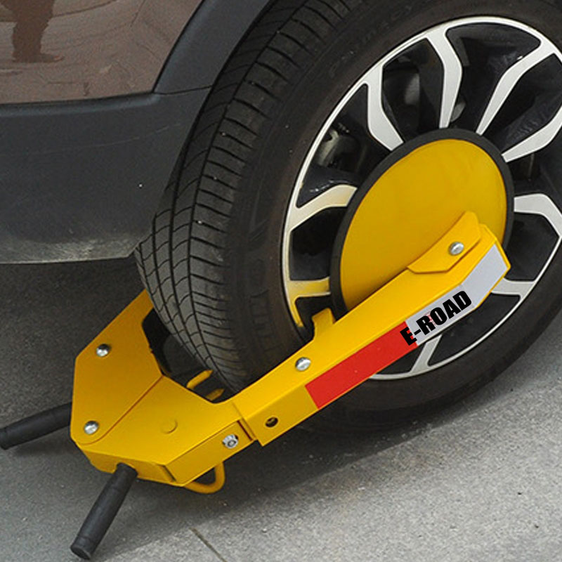 The E-Road WC-1-1 is a robust, high-visibility anti-theft device designed to secure your vehicle by locking the steering wheel and tire. Constructed from durable stainless steel and featuring a bright yellow finish, this lock serves as a powerful visual deterrent against car theft. It is universally suitable for most cars and trucks, providing an additional layer of security for your vehicle when parked in public or private spaces.