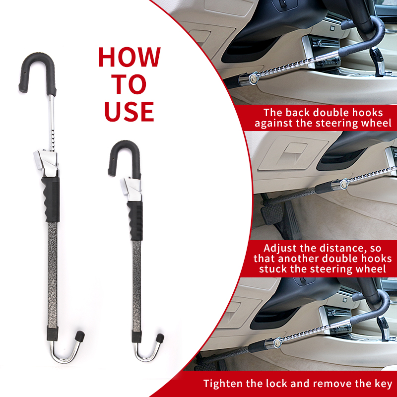 Positioning: After parking your vehicle, sit in the driver's seat and place the U-shaped lock across the steering wheel, ensuring it spans the diameter.