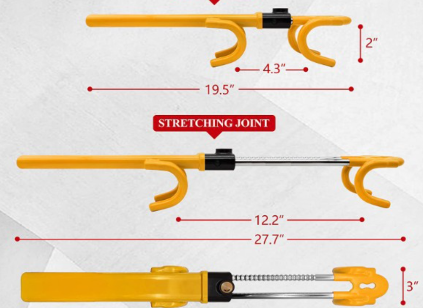 - Extend and Lock: Extend the bar to its full length and position the other hook on the opposite side of the wheel or, if designed, onto the brake pedal.