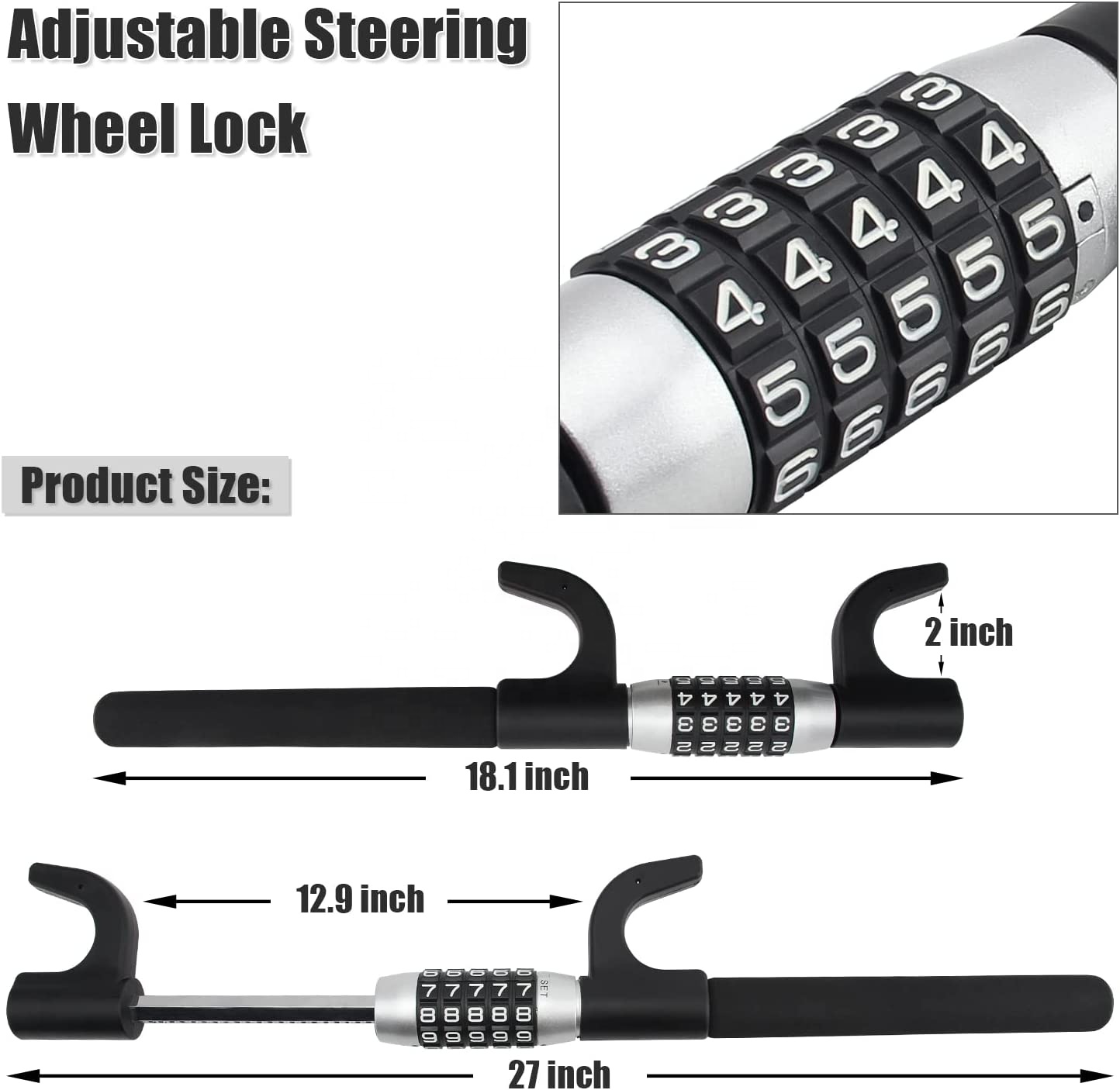 Umedo 5 Code Combination Anti Theft Steering Wheel Lock - Heavy Duty Security for Auto Truck SUV