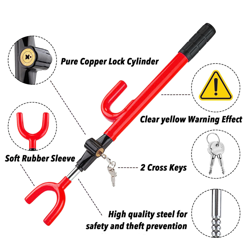 Adjustment: Extend or retract the lock bar to fit the diameter of your steering wheel.