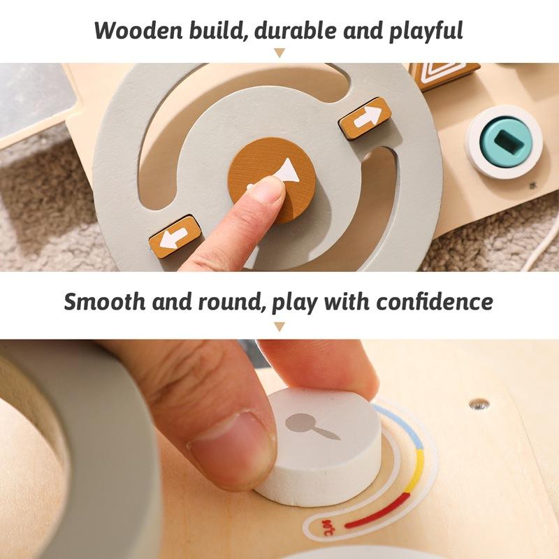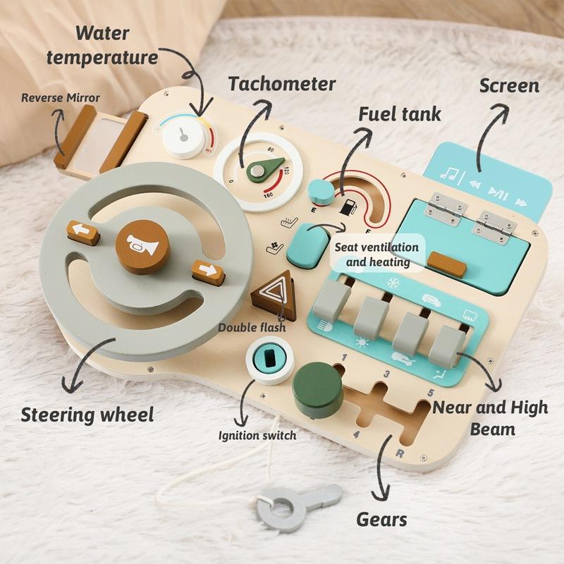 IFunToys Wooden Steering Wheel Busy Board: Montessori Driving Simulation & Skill Development Toy