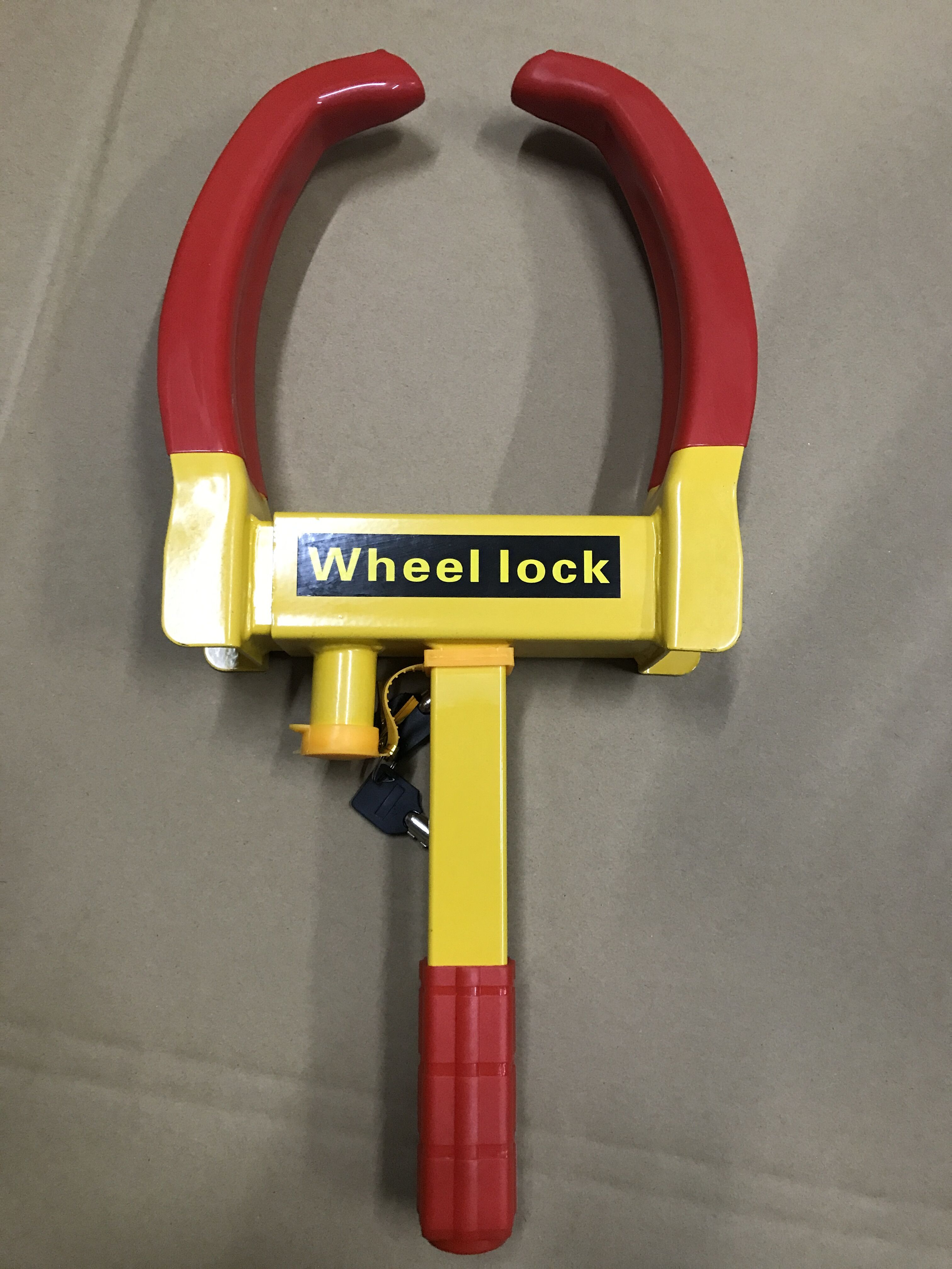 This heavy-duty wheel clamp is a professional-grade anti-theft device designed for vehicles. Manufactured by Ningbo Beilun Loveyoung Auto Accessories Co., Ltd., a supplier with 7 years of experience, this product is engineered to provide maximum security for cars, trucks, and other vehicles. Its bright yellow and red color acts as a visual deterrent to potential thieves. The lock is constructed from high-strength steel with a powder-coated finish for weather resistance and features a zinc alloy cylinder for reliable locking mechanics. It comes with two keys for user convenience.