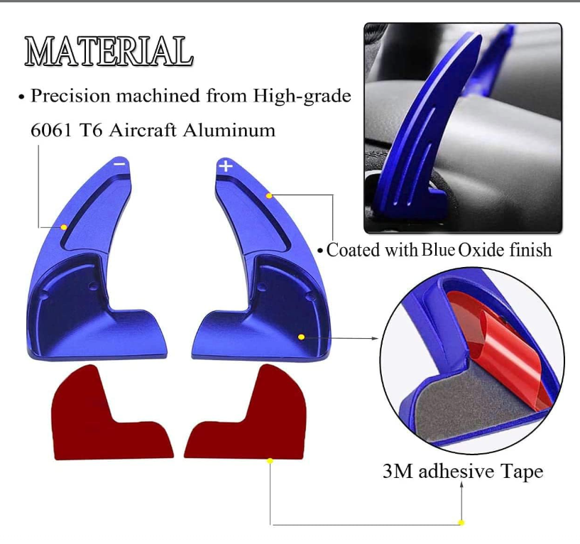 Paddle Shifter Extensions: Clean the OEM paddle with rubbing alcohol, warm the adhesive tape with a hairdryer, and press firmly for 2 minutes.