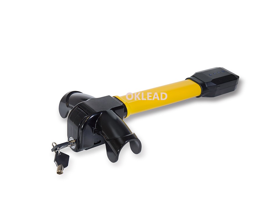 This universal T-shaped steering wheel lock is a high-security anti-theft device designed to provide an effective physical deterrent against vehicle theft. Crafted from robust steel, its T-shaped design maximizes locking points on the steering wheel, making it extremely difficult for thieves to maneuver the vehicle. The product is universally compatible with most car models and includes two keys for convenience. The model number is OKL6005LED.