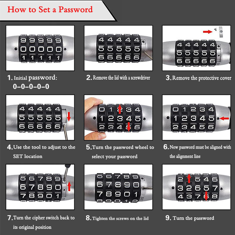 - Engaging the Lock: Rotate the dials to scramble the numbers after locking, ensuring the correct code is hidden.