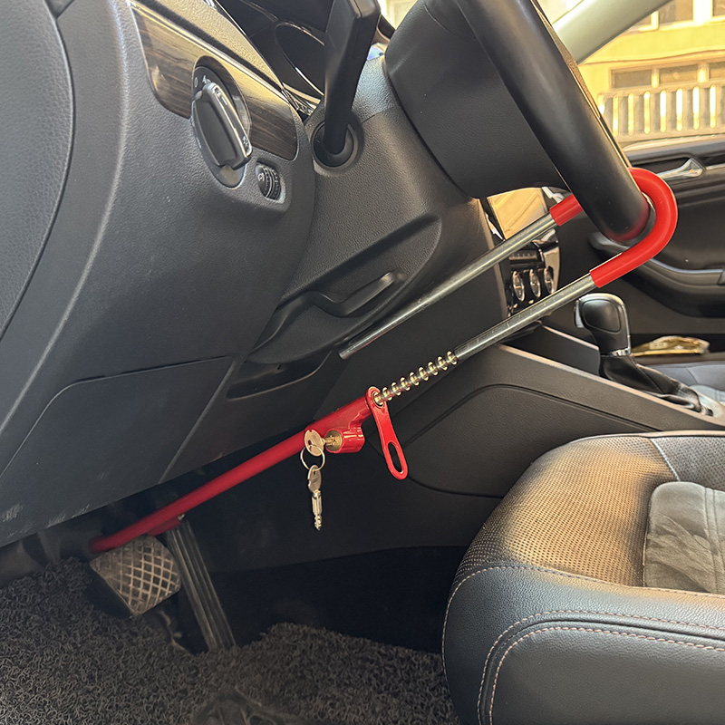 This T-shaped steering wheel lock from Anke Auto Accessories is a robust anti-theft device designed to provide an additional layer of security for your vehicle. Manufactured with high-quality A3 steel, it features a double-hook twin bar design that effectively locks the steering wheel, deterring potential theft. The product is universal for most car models and comes with three keys for convenience.