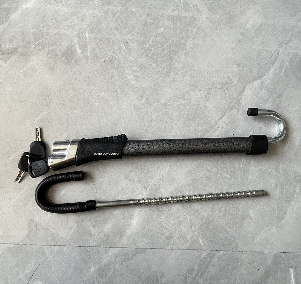 This Loveyoung Universal Car Steering Wheel Lock is a high-security anti-theft device designed to provide visible protection for your vehicle. Featuring a robust double J-hook design and constructed from hardened steel, it effectively locks the steering wheel, deterring potential theft. It is a universal fit, compatible with most passenger cars, and offers peace of mind for car owners.