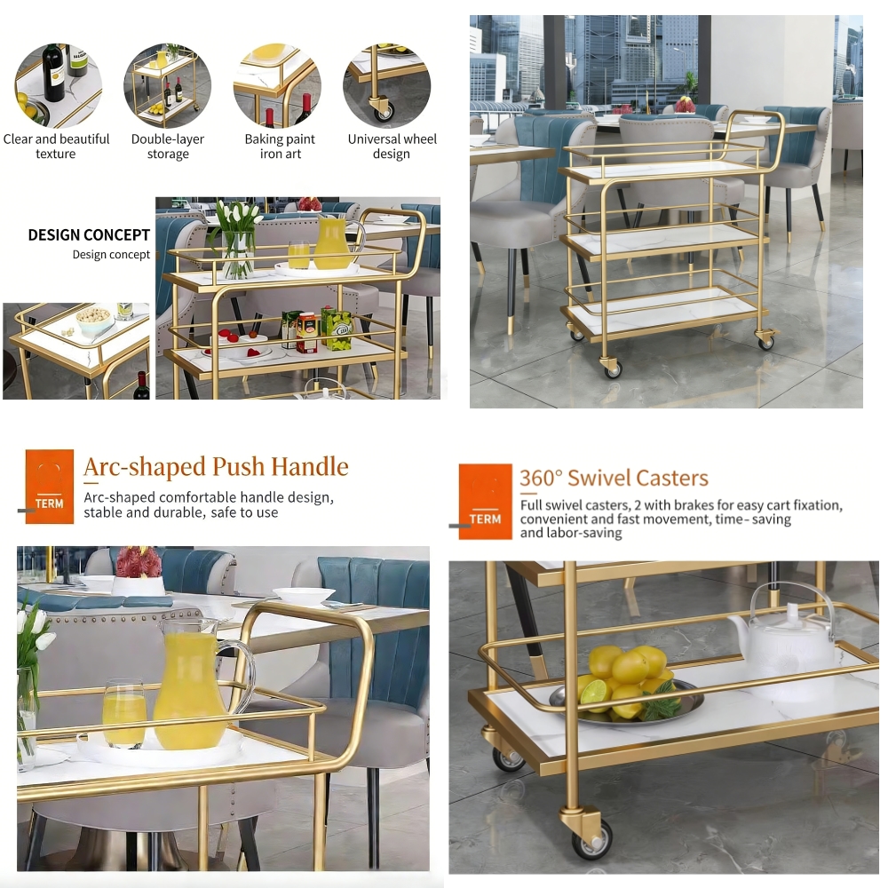Gold Ironwork Heavy-Duty 500kg Capacity 4-Wheel Salon Water Cart Black 3-Layer Bar Serving Trolley Hand Truck