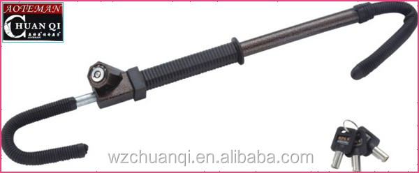 The Legend CQ-6031 Car Pedal Lock is designed for ease of use and maximum security. To engage the lock, extend the bar and position it between your vehicle's brake or clutch pedal and the steering wheel, effectively preventing the pedal from being depressed. Use the provided high-security key to lock the mechanism in place. The 55cm length ensures a secure fit in most passenger vehicles. To remove, simply unlock with the key and retract the bar for compact storage.