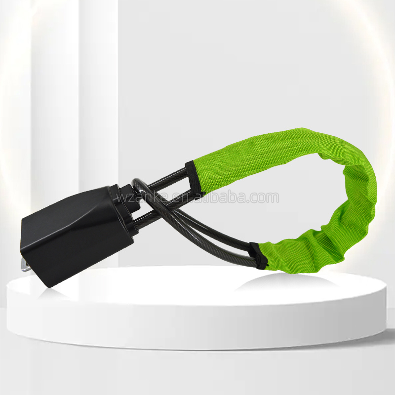 - Secure the Lock: Pull the belt chain tight to remove any slack. Insert the locking tip into the main lock body until you hear a distinct click, indicating it is engaged.