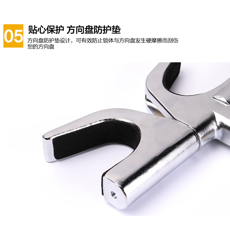 The YH1194 Universal Car Steering Wheel Lock is a professional-grade anti-theft device designed to provide enhanced security for your vehicle. Manufactured by Ningbo Chenming Metal Co., Ltd., this retractable lock is constructed from high-quality materials, including steel, brass, and plastic, ensuring durability and resistance to tampering. With a sleek silver finish achieved through chrome plating, it serves as a visible deterrent to potential thieves. The lock comes with three keys for convenient access and is universally compatible with most car models.