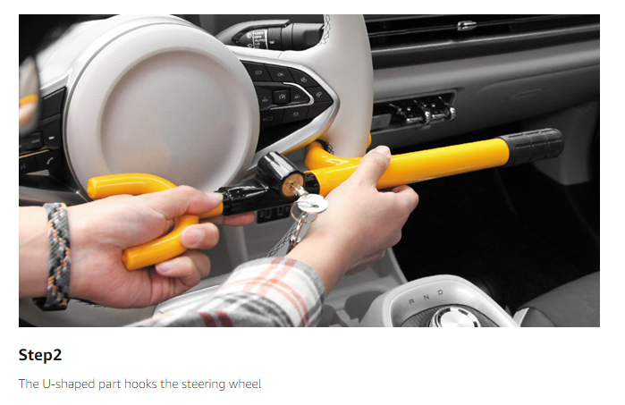 Using the steering wheel lock is straightforward. First, extend the twin bars to fit the diameter of your steering wheel. Position the hooks around the steering wheel's rim, ensuring a secure fit. Then, lock the device using the provided key. Once locked, the steering wheel will be immobilized, making it extremely difficult for anyone to steer the vehicle without removing the lock. Always remember to remove the lock before driving.