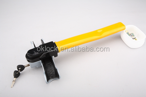 The OKLead CH830 is a universal-fit steering wheel lock designed to provide an effective visual and physical deterrent against vehicle theft. Manufactured by Zhejiang OKLead Auto Parts Co., Ltd., a company with over 17 years of experience in the automotive parts industry, this lock is constructed from high-strength materials to ensure reliability and durability. Its primary function is to lock the steering wheel in place, preventing it from being turned, thus making it extremely difficult for thieves to drive the vehicle away. The lock features a distinctive black and yellow color scheme, enhancing its visibility and acting as a strong theft deterrent.