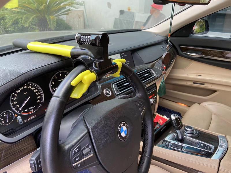 Using the steering wheel lock is straightforward. First, extend the lock bar to fit across the diameter of your steering wheel. Position it so that one end hooks securely behind a spoke of the steering wheel. Then, set your personal code and lock the device in place. The bright yellow color provides a high-visibility warning to potential thieves, making your vehicle a less attractive target.